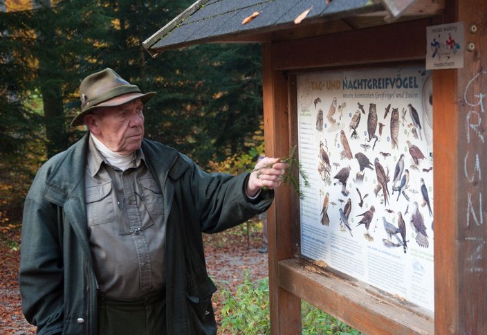 So schön kann Unterricht sein: an einem strahlend schönen, goldenen Oktobermorgen durch den Wildpark Eichert schlendern, während der wie immer gut gelaunter, humorvoller Ausbilder Uli Löffler nicht nur alles wissenswerte über die dort vorkommenden Tierarten erzählt , sondern auch noch an den vorhandenen Blättern von Busch und Bäumen das "Grünzeug" - (pardon-im Moment ist es bunt -) erklärt - das ist wirklich Unterricht in der Praxis, bei dem man bekanntlich am meisten lernt.
