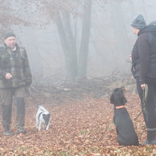 Trotz des neblig-trüben Wetters fanden sich vier der sieben Teilnehmer auf dem Platz in Steinheim ein, um fleißig weiter zu trainieren. Die allgemeinen Gehorsamsübungen klappten bei allen Hunden gut, was zeigt, dass das Gelernte zu Hause wohl mit Spaß und Feude vertieft wird.