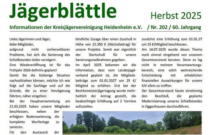 Das Jägerblättle Herbst 2025 ist in den nächsten Tagen bei KJV Mitgliedern im Briefkasten!