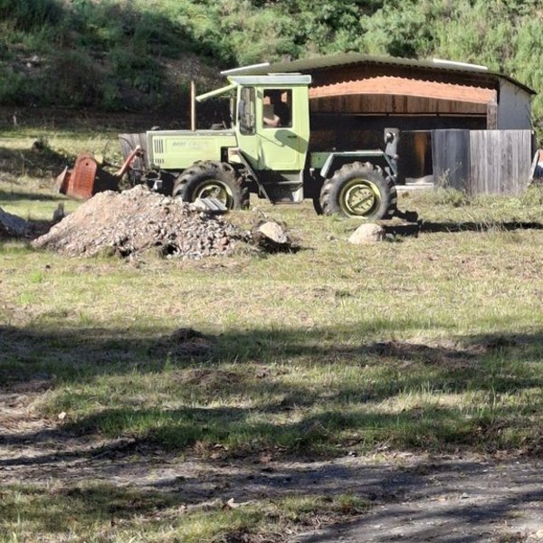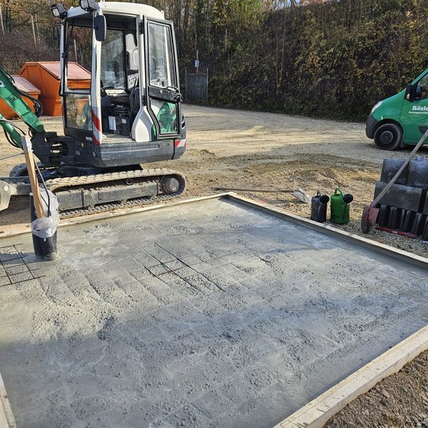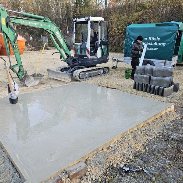 Peter Rösle hat sich auf meine Bitte hin spontan bereit erklärt, das neue Fundament für das Niederhaus und die Fundamente für den neuen Lagercontainer auszuführen. Hierbei setzte er an mehreren Tagen auch seine eigenen Maschinen ein!