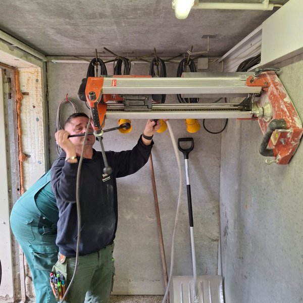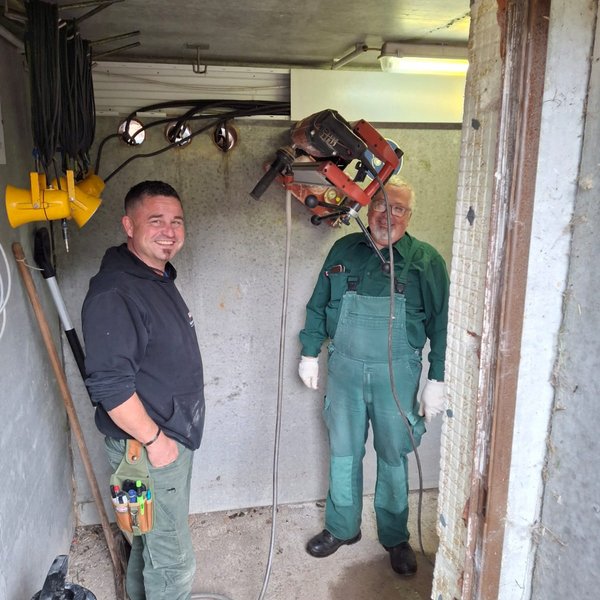 Stellv. Hegeringleiter (Härtsfeld) und Elektrofachmann Jürgen Röhm hat zusammen mit Thomas Fröhle den Verlauf sämtlicher bestehender Elektroleitungen untersucht und die noch fehlenden Leerrohre verlegt. Außerdem haben sie im Trapbunker eine zusätzliche Kernbohrung für die neuen Zuleitungen durchgeführt. Federführend übernahm Jürgen Röhm die Abklärung aller elektrotechnischen Abstimmungen mit der Firma Johannsen (Lieferant der neuen Wurfmaschinen) Somit ist sichergestellt, dass die Montage reibungslos erfolgen kann.