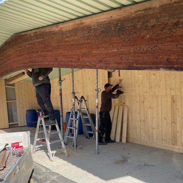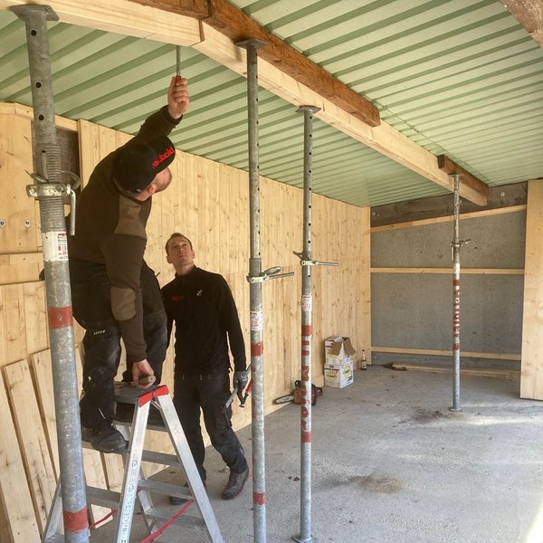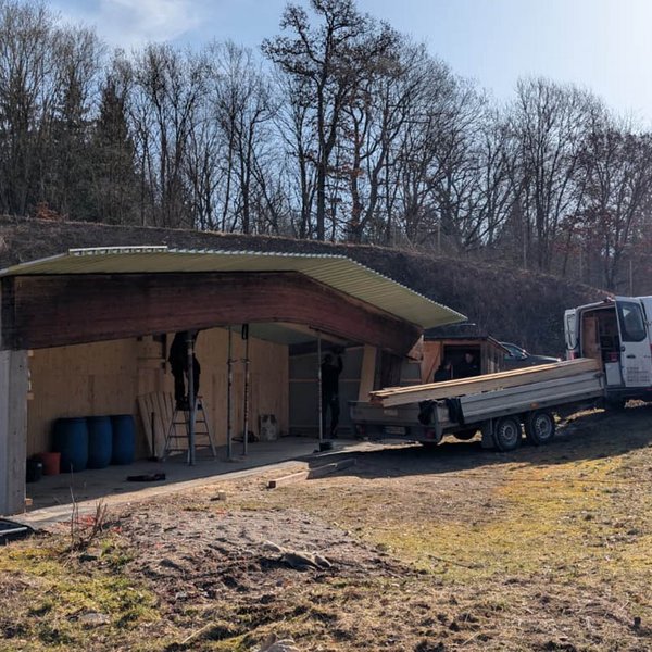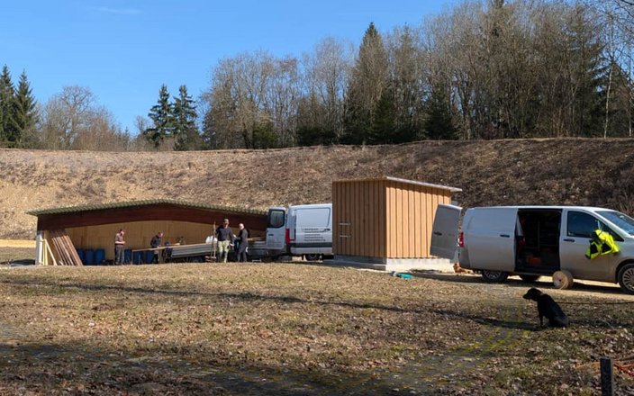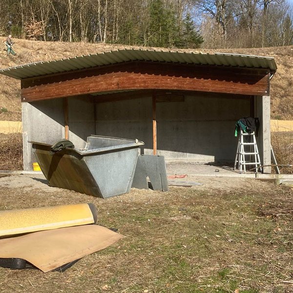 Am Schießstand in Oggenhausen geht es mit großen Schritten weiter: Bei herrlichem Wetter und unter dem Einsatz zahlreicher fleißiger Helfer ging die Arbeit gut von der Hand. Während beim Rollhasen das Dach abgefangen und die Verblendung fortgeführt wurde, wurde beim Kipphasen das alte Blechgehäuse abgebaut und die Holzkonstruktion abgerissen Außerdem wurden bereits die Kabel und die Elektrik für die neuen Maschinen vorbereitet und ein Teil des Walls freigeschnitten, um Platz für weitere Maßnahmen zu schaffen.
