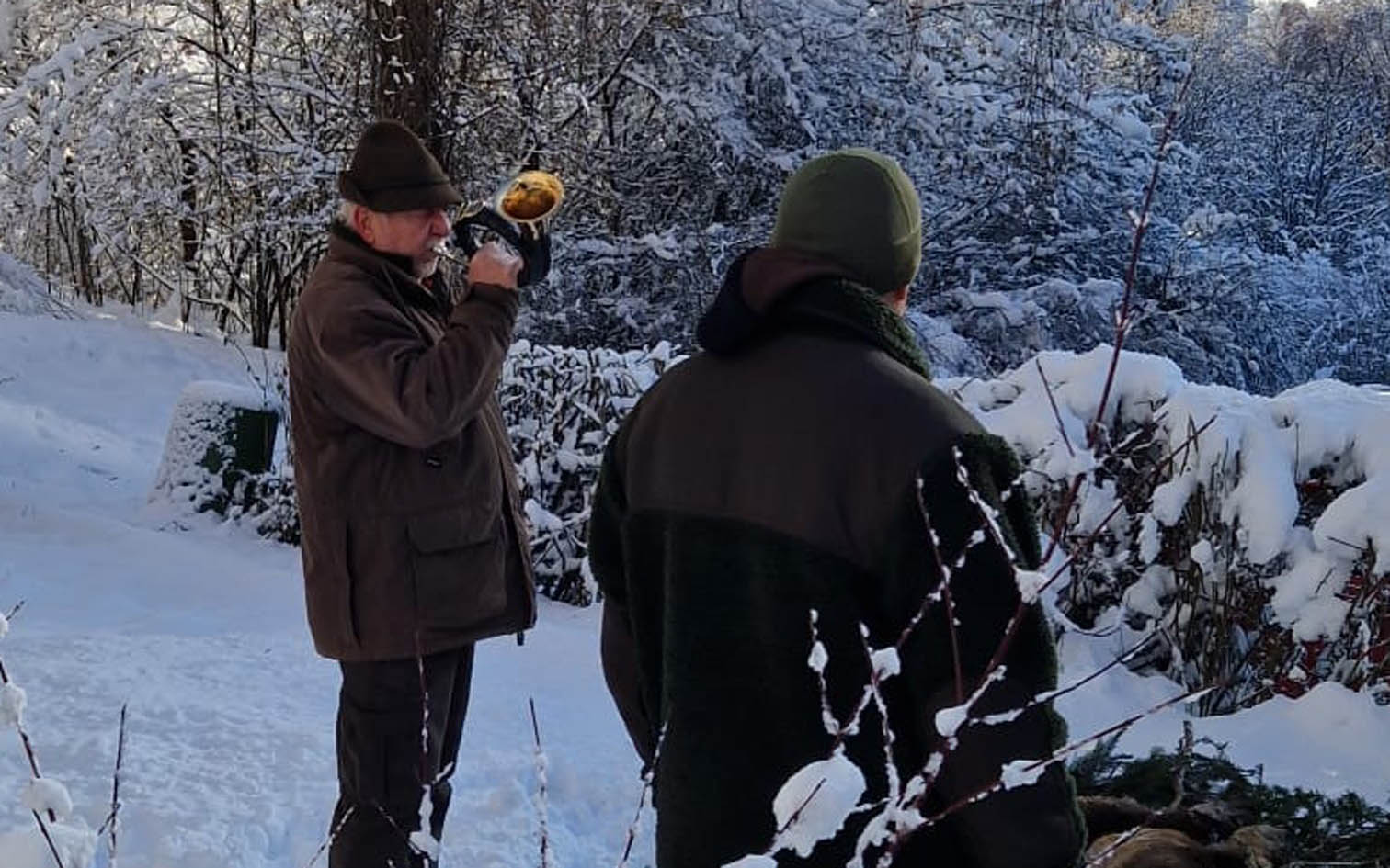 Herrliches Winterwetter, mit geschlossener Schneedecke – ideal für den gemeinsamen Ansitz – sollte man meinen – fast zu gut, wenn man an die Schneehöhe von bis zu 40 und 50 cm denkt. Nicht alle Reviere konnten befahren werden, nicht überall konnte man die Kanzeln überhaupt erreichen, der Schneebruch tat sein übriges. Und der Fuchs ist bei diesen Bedingungen auch weniger auf den Läufen.