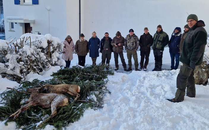 Trotzdem lagen am Morgen auf der Strecke beim Schützenhaus Katzental 1 Gais und 1 Kitz, die waidgerecht verblasen wurden.