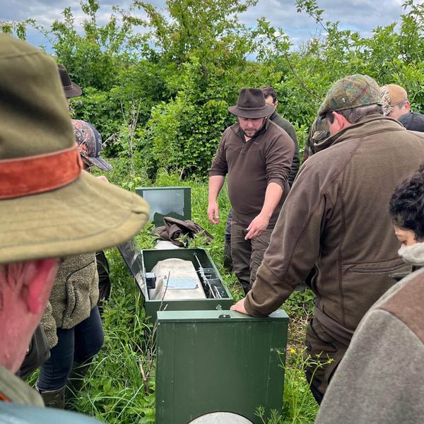 Im Zentrum des Vortrags stand die effektive Bejagung von Prädatoren wie Fuchs und Marder, wobei der Schwerpunkt auf der Fallenjagd lag. Herr Gut erläuterte praxisnah die Funktionsweise verschiedener Fallenarten, wie beispielsweise Betonrohr- und Kastenfallen, und gab wertvolle Tipps zu deren effektiven Einsatz im Feld. Die Teilnehmer erhielten zudem Einblicke in die rechtlichen Rahmenbedingungen der Fallenjagd.Um das theoretisch Gelernte in der Praxis zu vertiefen, traf man sich vor ein paar Tagen im Revier von Benjamin Gut in der Nähe von Karlsruhe. Die Teilnehmer erhielten dabei die Gelegenheit, verschiedene Biotope für Niederwild kennenzulernen und praxisnah zu erfahren, wie die Fallenjagd konkret durchgeführt wird. Benjamin Gut erklärte vor Ort genau Standorte und Funktion der einzelnen Fallenarten.