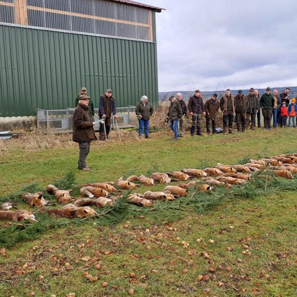 Am 23.02.2025 traf sich der Hegering und die Hegegemeinschaft zur jährlichen Fuchswoche-Streckenlegung wieder beim Schwarzen Beck in Dettingen.