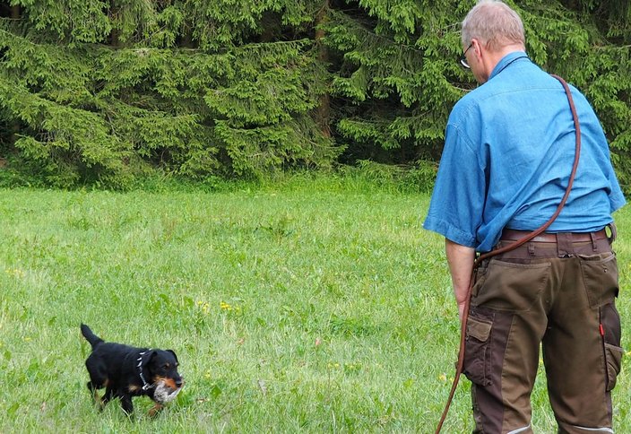 Der Lohn für viele Stunden beharrlichen Übens, großer Geduld und ein Grund zur Freude bei Herr und Hund.