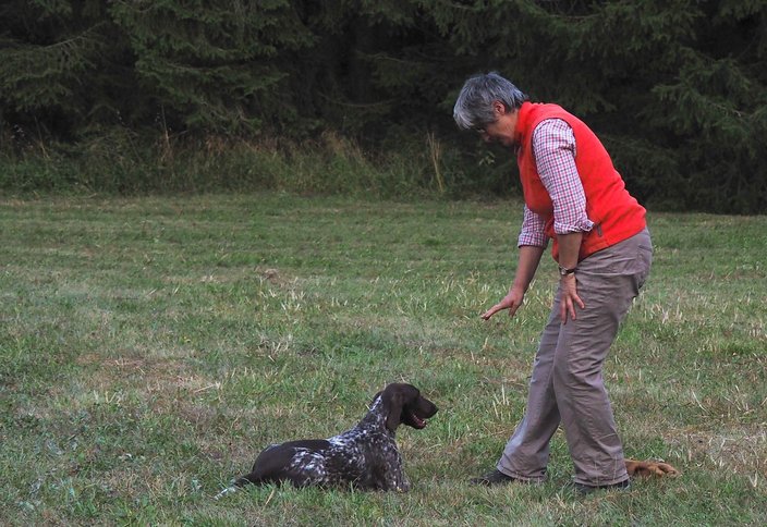 Sitz und Platz klappt bei allen schon recht gut, auch das Beifuß laufen wird immer besser. Sogar das Ablegen haut hin und wieder gut hin.