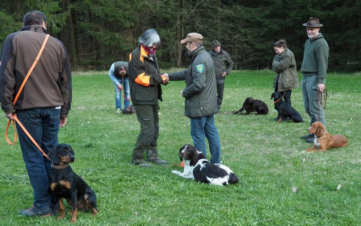 Aufmunternde Worte kamen dafür vom Kreisjägermeister Michael Stütz, der, wie er sagte, Freud und Leid der Hundeabrichtung selbst durchaus kennt. Er wünschte allen Geduld, Freude und ein gutes Gelingen. Försterin Karin Bauer dankte er, dass die KJV auch in diesem Jahr den Jagdgebrauchshundekurs bei der Baurenhäuleshütte abhalten kann.