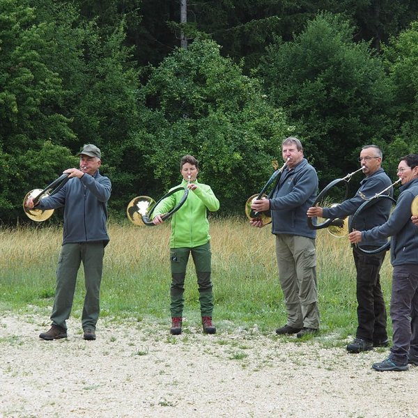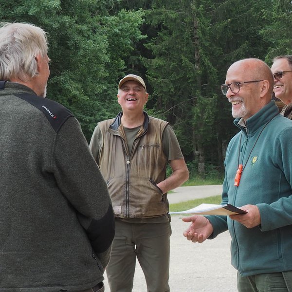 Mit dem feierlichen Klang der Parforcehörner unserer Bläsergruppe startete die Brauchbarkeitsprüfung 2025 an der Baurenhäuleshütte bei Königsbronn. Kreisjägermeister Michael begrüßte die teilnehmenden Gespanne herzlich und wünschte allen viel Erfolg, denn neben allem Können gehört auch immer etwas Glück dazu. Sein Dank galt den engagierten Ausbildern, den Richtern, dem Forst BW und allen Helfern, die diese Prüfung erst ermöglichten.