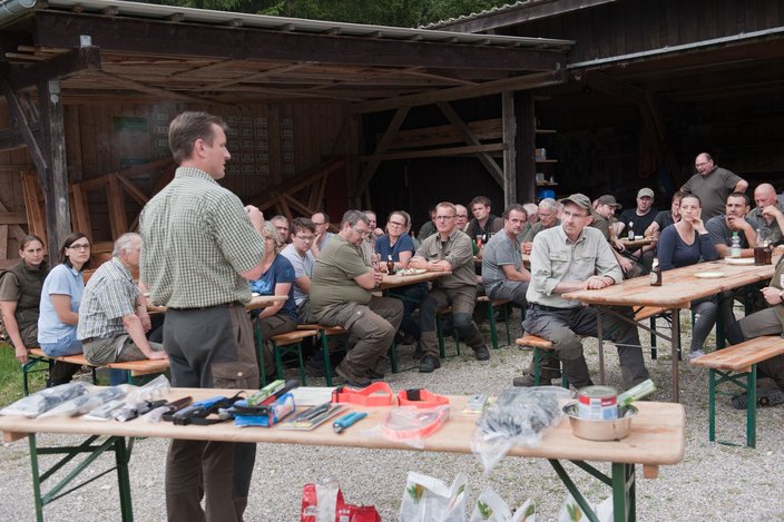 Nach dem Mittagessen wurden die Urkunden an die erfolgreichen Hundeführer/innen mit Preisen übergeben. Tagessieger wurde Hansl Elser mit seinem Deutschen Jagdterrier "Cox".