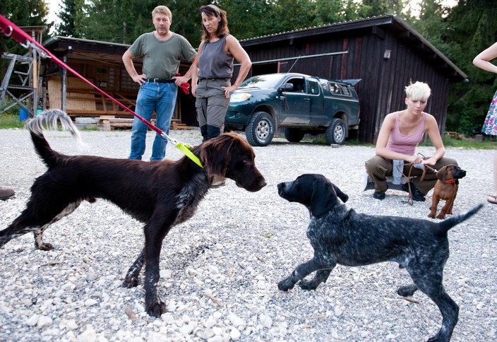 Im Vordergrund stand das Spielen miteinander, das Kennenlernen und die erste Berührung mit verschiedenen Wildarten. Sogar eine kurze Schleppe konnte einmal erschnüffelt werden und wurde mit Begeisterung angenommen.