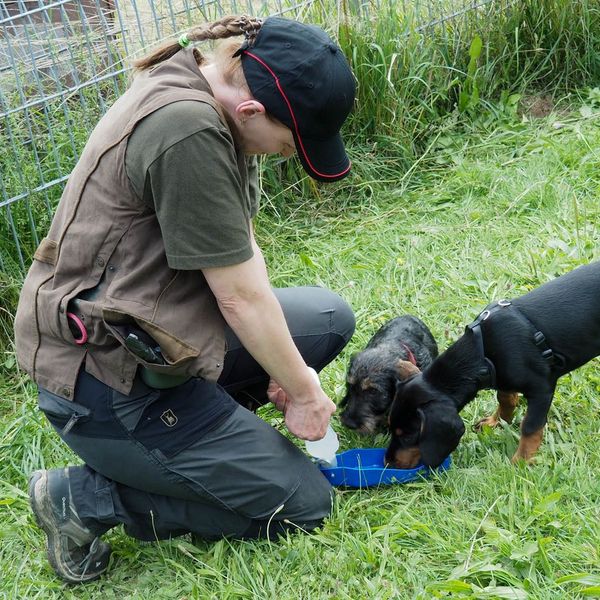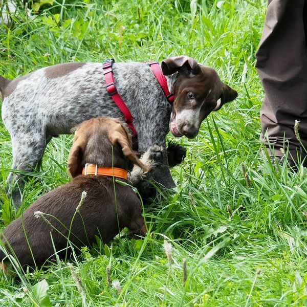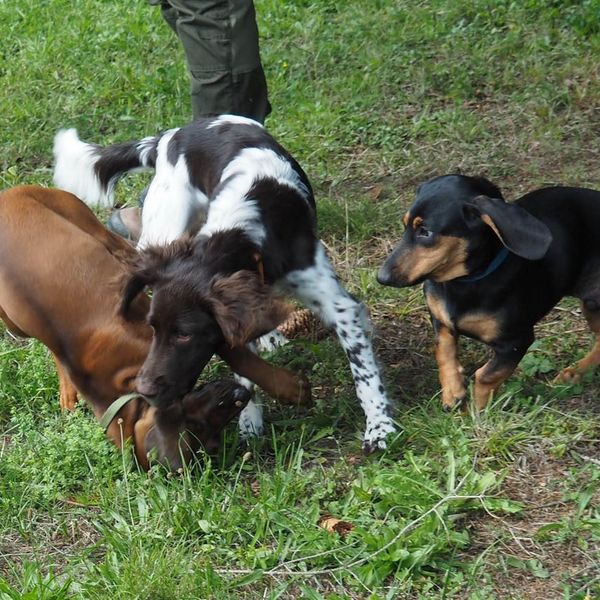 Beim ersten Tag des Welpenkurses hielt Hundeobmann Martin Schietinger für die zehn Teilnehemer ein rundum Paket von Verhaltensregen, Hinweisen und Tipps bereit. Von: wie hole ich meinen Welpen aus dem Auto? über: was muss ich über die neue Tierschutz-Hundeverordnung wissen? Und: Wie verhalten wir uns bei der Zahn – und Gebäudekontrolle beim Tierarzt? Dazu Hinweise auf Impfpflicht, Entwurmung und Früherziehung, auf Handwerkszeug wie Leine und Hundepfeife. Und die Welpen? Sie konnten, in zwei Gruppen nach Größe unterteilt, die ersten Kontakte aufnehmen. Das fiel, je nach Temperament, stürmisch oder vorsichtig und ängstlich aus. Die meisten der kleinen Hunde aber hatten riesig Spaß daran und tobten umher. Von den Führern beobachtet, wie beim ersten Kindergartenbesuch.
