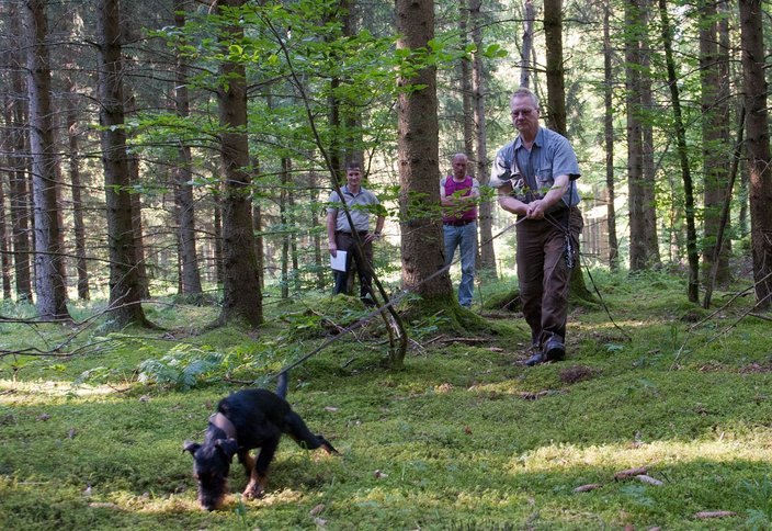 "Achtet besonders darauf, dass der Hund jetzt vor der Prüfung nicht an Wild kommt oder vielleicht sogar Hasen jagt. Das wäre wirklich nicht gut!"