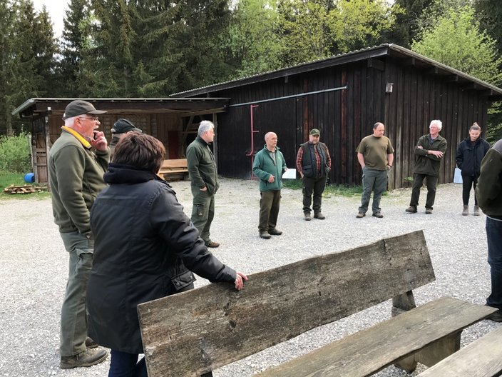 im Stangenholz. Hierzu wurden die Teilnehmer in zwei Gruppen aufgeteilt. Kommenden Donnerstag wird dann durch gewechselt. Zusätzlich war auch der „richtiger Schuss mit der Flinte“ auf dem Tagesprogramm um das Verhalten für den Samstag (28.04.18) zu beobachten. Die Teilnehmer treffen sich an diesem Tag um 8:30 Uhr auf dem Parkplatz vor dem Schießstand in Oggenhausen. Hier wir es sich zeigen ob da einer klemmt oder gar stiften gehen will.