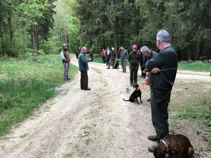 „…das Verhalten der Hunde heute war gut…“ so laut Aussage des Hundeobmann Martin Schietinger zum freiwilligen Zusatztermin am Samstagmorgen in Oggenhausen. Der Hundeobmann und Anna Badmann nutzten den Tag des Hegeringvergleichsschießen um die Hunde des aktuellen Hundeführerlehrgangs an den Schuss heranzuführen. Die Übung dient dazu, die Hunde langsam auf die Prüfung vorzubereiten. An der Prüfung wird ein Standtreiben simuliert bei der der Hundeführer zwei Schuss mit seiner eigener Waffe abgeben muss.