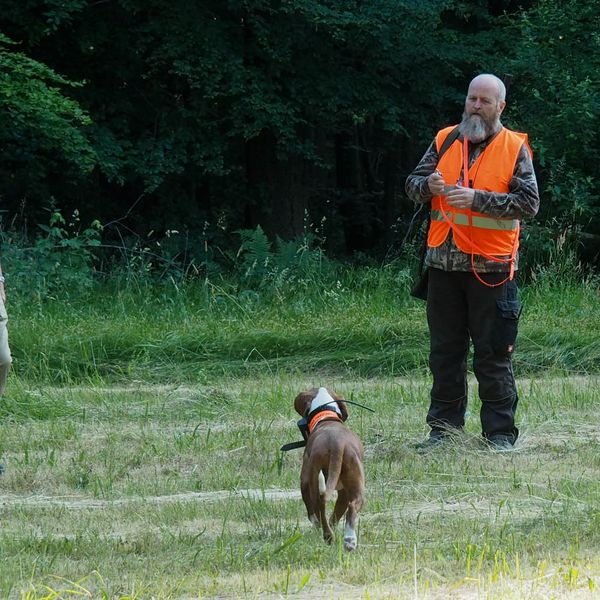 Achter Übungsabend beim Hundeführerlehrgang 2023 – man kann sagen Halbzeit, die Prüfung kommt in Sicht – am 22. Juli oder 27.September ist es so weit. Auch Zeit sich Gedanken zu machen, welches Modul man bei der Prüfung wählt: 1.1, die Nachsuche im Schalenwildrevier, oder 1.2, die erweiterte Brauchbarkeit Feld Wald (nach dem Schuss.) Demnächst kommt die Anmeldung zur Prüfung und die Nennung.