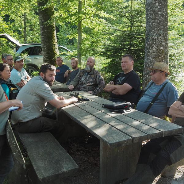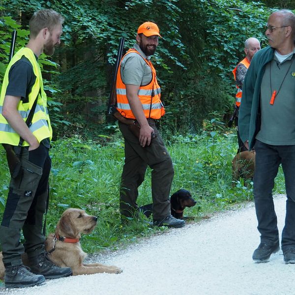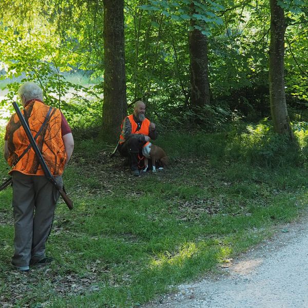 Übungen an diesem Abend: die Ruhe beim Standtreiben (Schuss nur der Treiber), Leinenführigkeit im Stangenholz, das Wegschicken und wieder Hereinkommen des Hundes zur Prüfung der Schussfestigkeit. Dabei lag die Schwierigkeit bei fast allen Hunden eher beim sich vom Führer lösen, als beim auf Pfiff wieder Herkommen. Fazit: Gehorsam muss weiter geübt werden, wie eigentlich immer! Auch Hunde sind vergesslich.