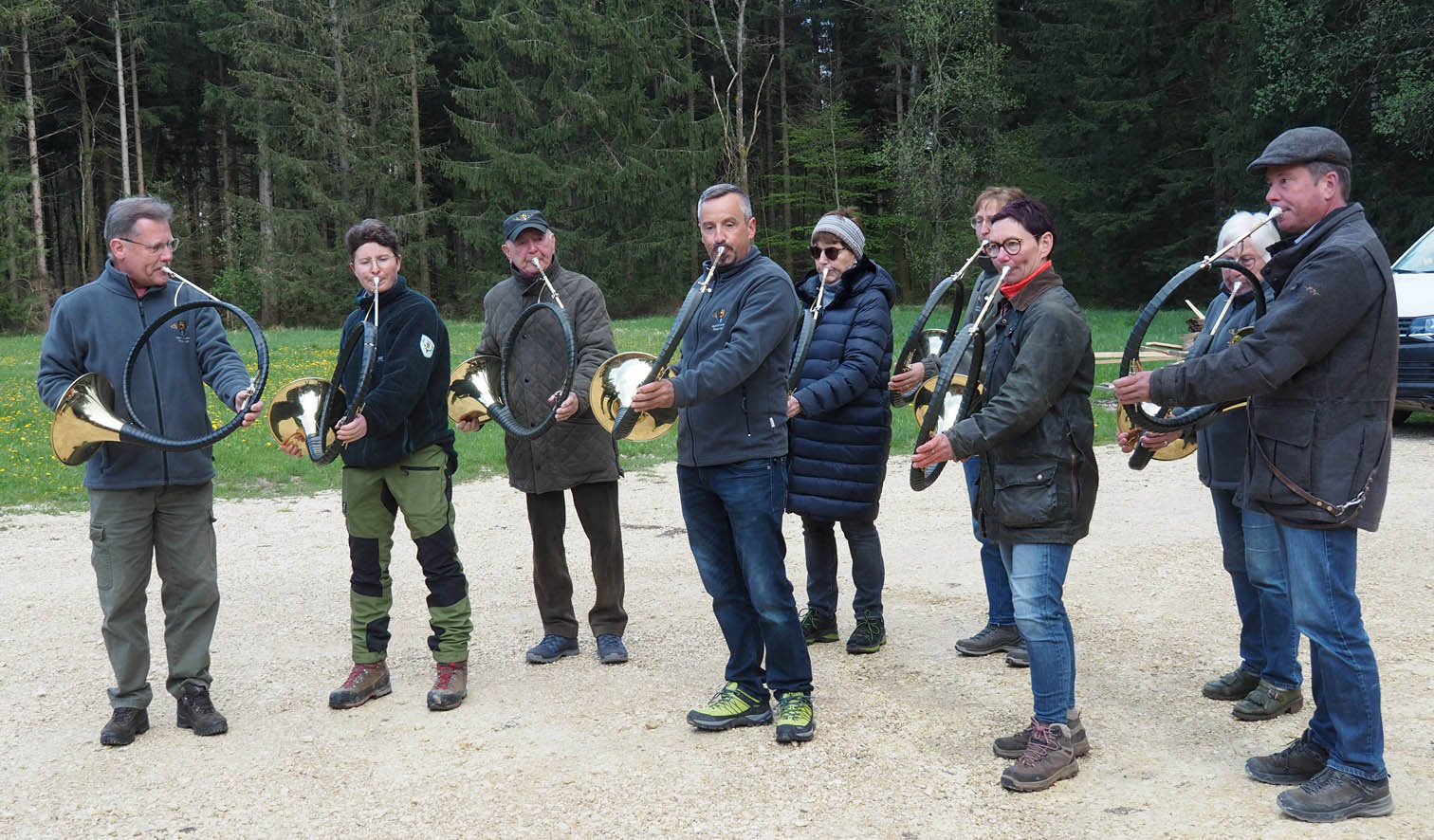 Bei nasskaltem Aprilwetter trafen sich am Donnerstagabend die 14 Teilnehmer zum Hundeführerlehrgang 2024 an der Baurenhäuleshütte. Begrüßt wurden sie von den Jagdhornbläsern der Kreisjägervereinigung, bevor Kreisjägermeister Michael Stütz die Teilnehmer auf arbeitsreiche Wochen mit Höhen und Tiefen einstimmte.