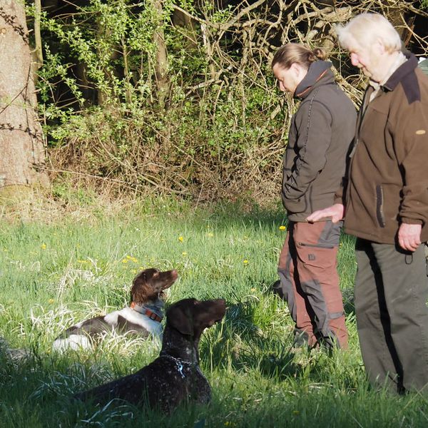 Der Hundeführerlehrgang hat seinen Namen nicht umsonst: hier lernen sowohl der Hund als auch der Hundeführer. Der Hund lernt, auf seinen Führer zu hören, ihm zu gehorchen, während der Hundeführer lernt, seinen Hund richtig, vor allem konsequent zu führen. Grundgehorsam ist die Basis für die gesamte Jagdhundeausbildung.
