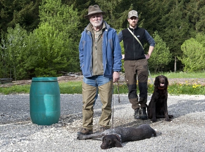 Neben der Unterordnung und der Schweißarbeit standen an diesem vierten Tag des Lehrgangs die Ruhe beim Standtreiben und die Leinenführigkeit im Stangenholz im Vordergrund. Beides Sachen, die auch an der Prüfung gefordert werden. Auch das Apportieren klappt bei den meisten schon recht gut.