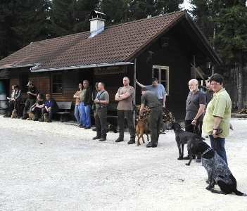 Auch in diesem Jahr lagen die Bläser zahlenmäßig wieder vorn: 18 Bläser waren zur Begrüßung gekommen, dem gegenüber standen 16 Hundeführer mit ihren Vierbeinern. "Knapp überlegen", meinte Hundeobmann Kai Bubeck bei der Begrüßung. Zusammen mit Petra Gansloser und Wolfgang Schlierer wird er Mensch und Tier, bis zur Prüfung am 13.Juli 2013, durch den Lehrgang führen. Es gibt viel zu lernen und so fing dieser erste Tag auch mit Übungen zur Unterordnung an, dem wohl wichtigsten Teil der Hundeausbildung überhaupt.
