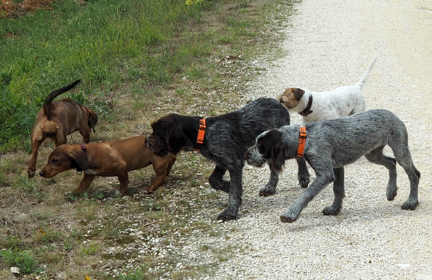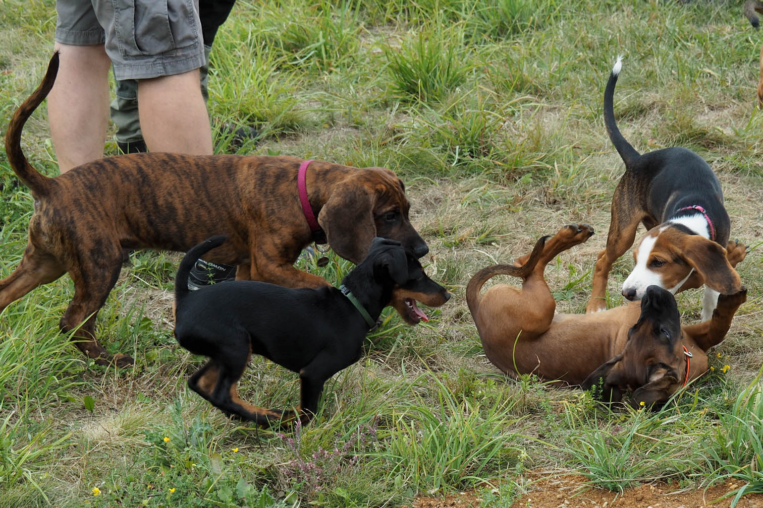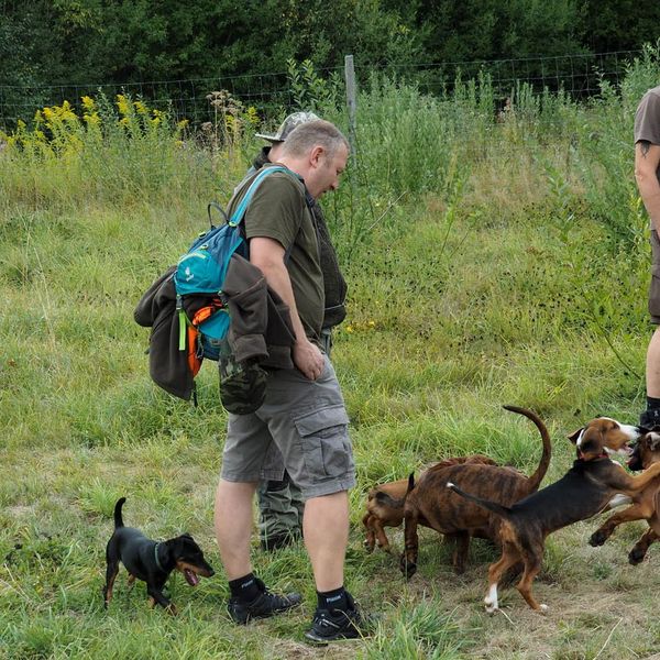 Viel haben haben die kleinen Gesellen in den letzten Wochen gelernt: neben dem Umgang mit Artgenossen und fremden Menschen, neue Geräusche und Gerüche, Kontakt mit Tierfellen und Hindernissen, und so ganz nebenbei Komandos unter Ablenkung - die ersten Schritte zum Gehorsam. Und auch die Führer haben gelernt, wie sie zB. in dieser wichtigen Prägephase mit ihrem Welpen richtig umgehen, damit ein gutes Jäger-Hund-Gespann entstehen kann.