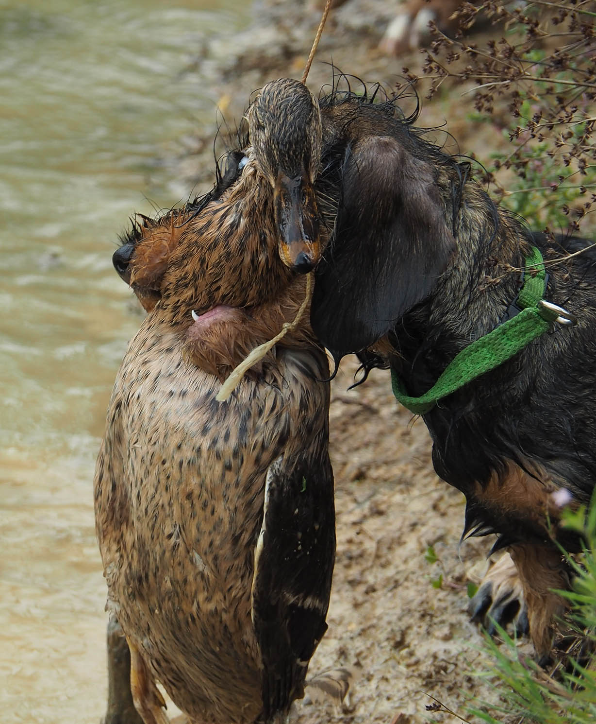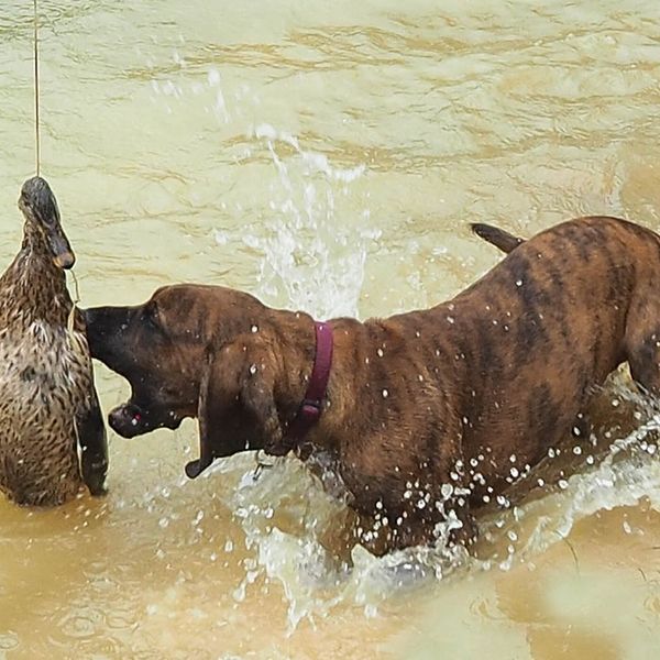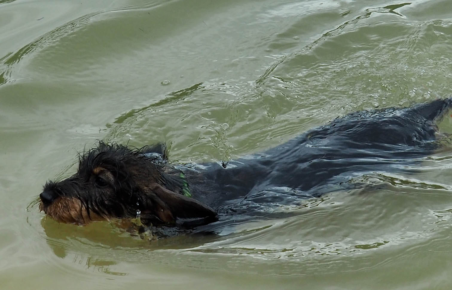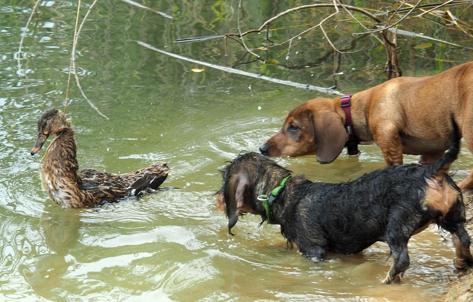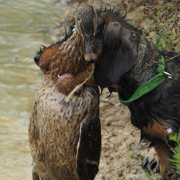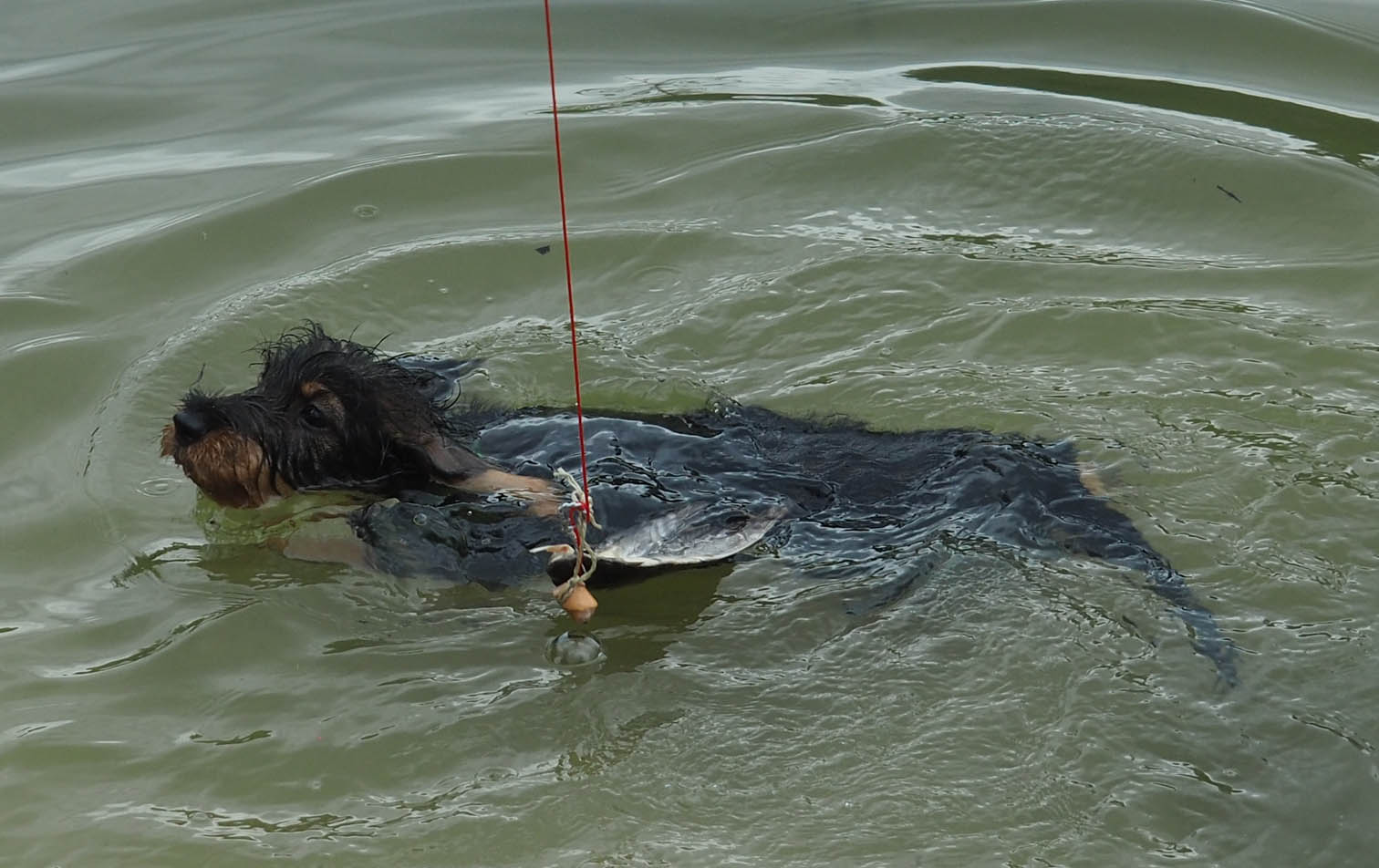 Beim letzten Tag des Welpenkurses 2022 auf dem Ochsenberg ging es um die Wasserfreudigkeit der jungen Hunde. Sie konnte unterschiedlich nicht sein. Während sich der eine Welpe nur zögerlich die Pfoten benetzte, zog die Neugier den anderen mit der Reizangel ganz hinein ins kühle Nass.