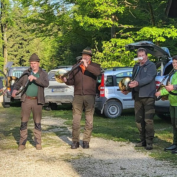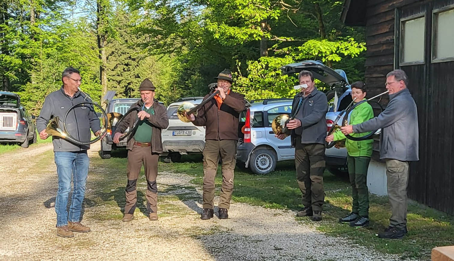 Eine Abordnung der Bläsergruppe der KJV Heidenheim umrahmte den Auftakt der Prüfung mit Hörnerklang.