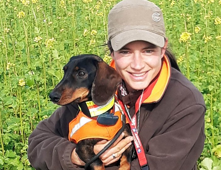 Die von ihr geloste Fährte war mit Schwierigkeiten gespickt: eine lange Passage über Schwarzwildgebräch, einige Verleitungen durch Rehwild. Mit Geduld, Ausdauer und Finderwillen meisterte das Gespann diese Situation.