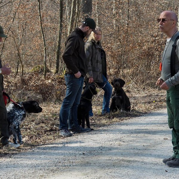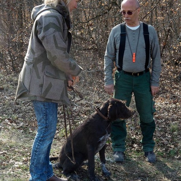 Der Hundeobmann begutachtete, komentierte, korrigierte und freut sich zusammen mit Hans Rau, dass ausnahmslos alle, die heute dabei waren, am Kurs zum Erlangen der jagdlichen Brauchbarkeit am 14. April 2022 teilnehmen, sich bereits angemeldet haben.