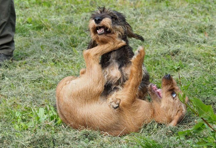 Für die gesunde Entwicklung der jungen Hunde sind Begegnungen mit gleichaltrigen Artgenossen äußerst wichtig. Sie lernen Kontakt aufzunehmen und beschnüffelt zu werden, sie lernen neue Geräusche und Menschen kennen, und so ganz nebenbei auch ein paar Kommandos für den Gehorsam.
