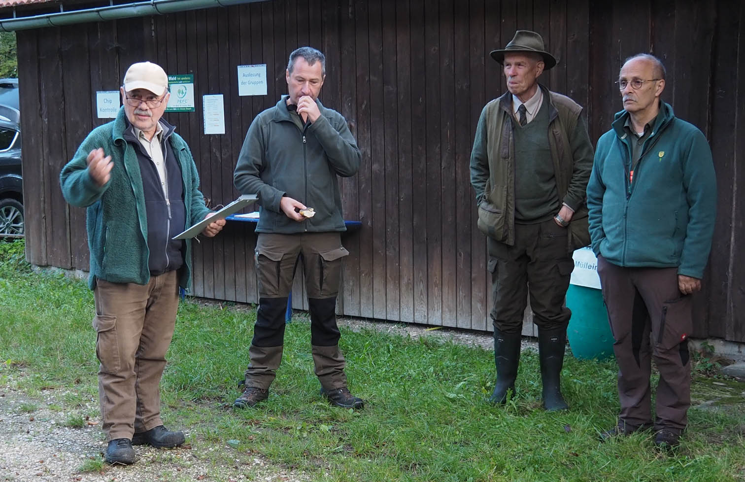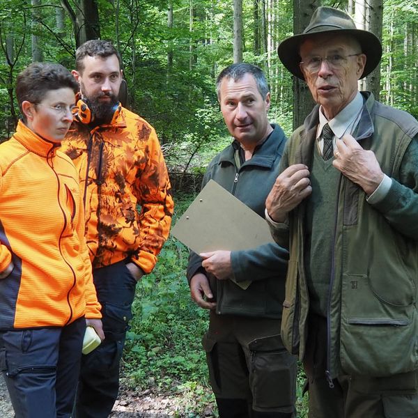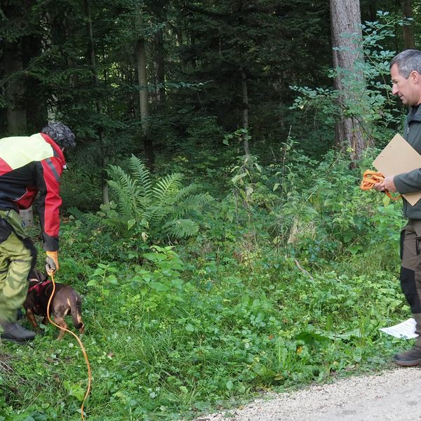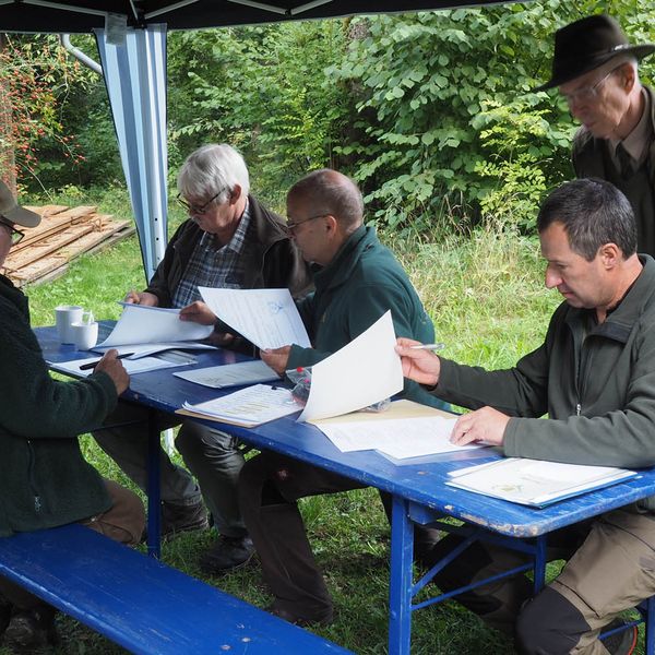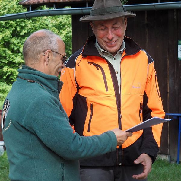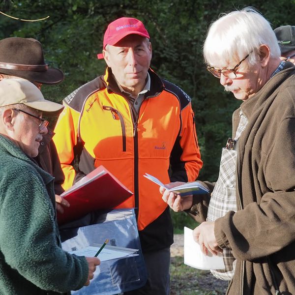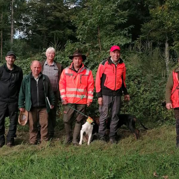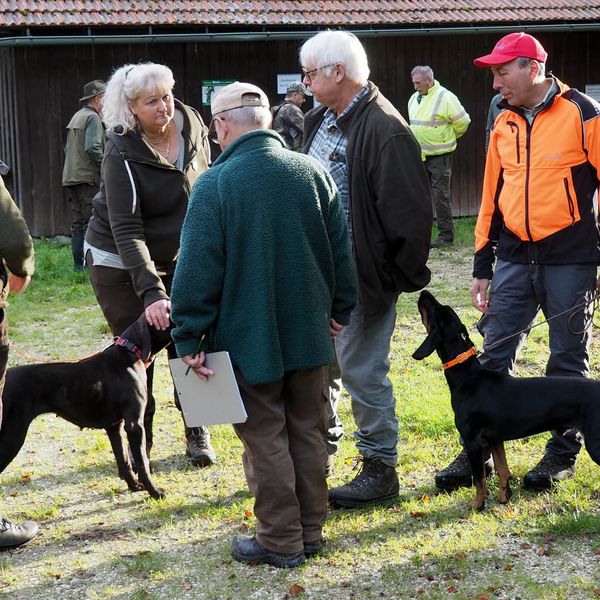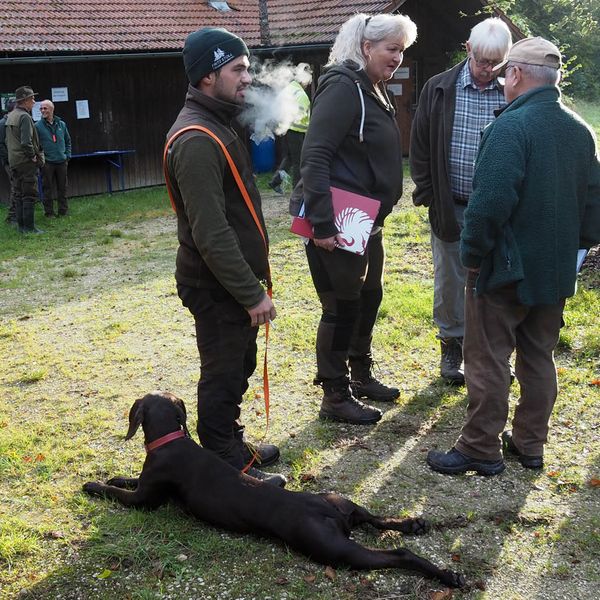 Zur zweiten Brauchbarkeitsprüfung 2023 sind, bei bestem Prüfungswetter an der Jägerackerhütte, 7 Gespanne angetreten. Hundeobmann Martin Schietinger begrüßte Richter und Teilnehmer, Prüfungsleiter Gerhard Weiß erläuterte noch einmal, worauf es bei den einzelnen Fächern nach der Prüfungsordnung ankommt, danach begann es direkt mit den Schweißfährten im umliegenden Bestand.