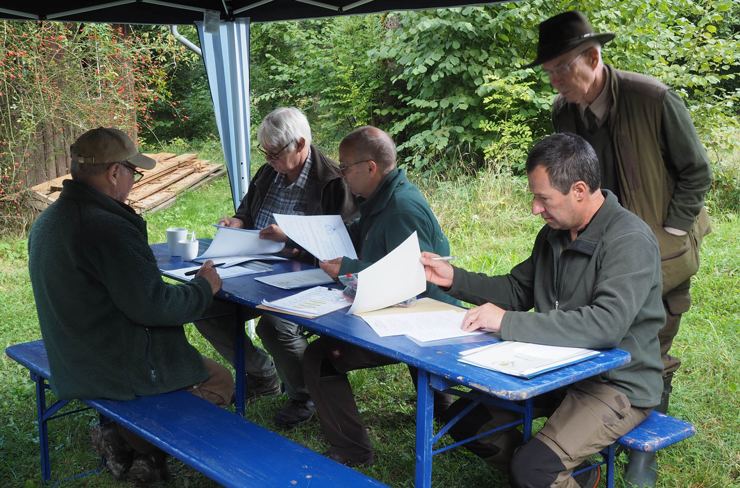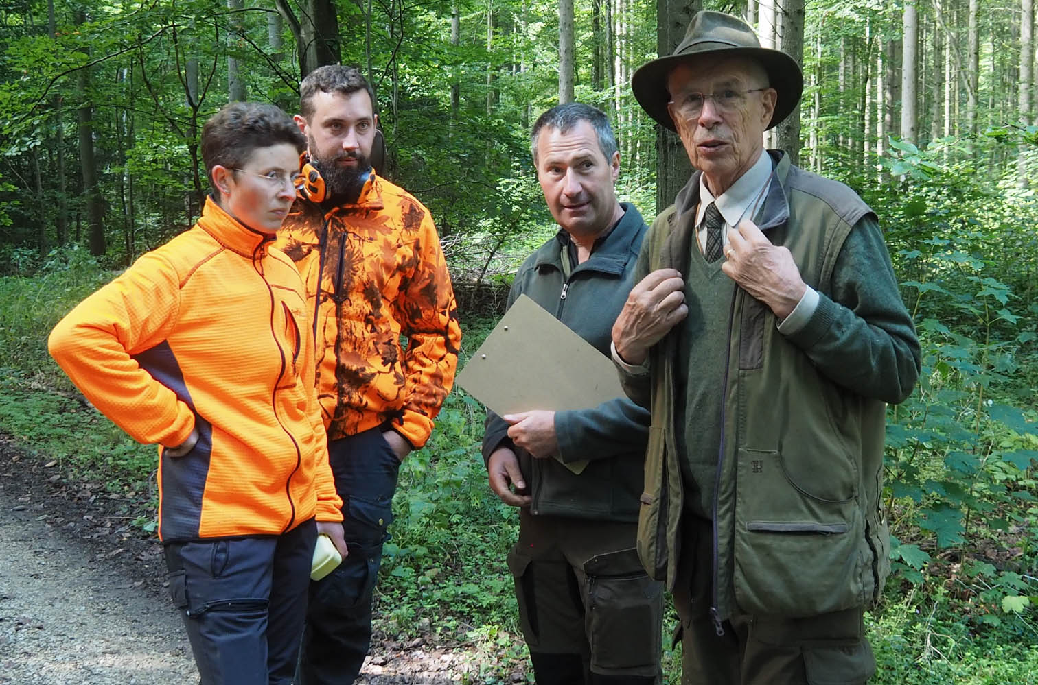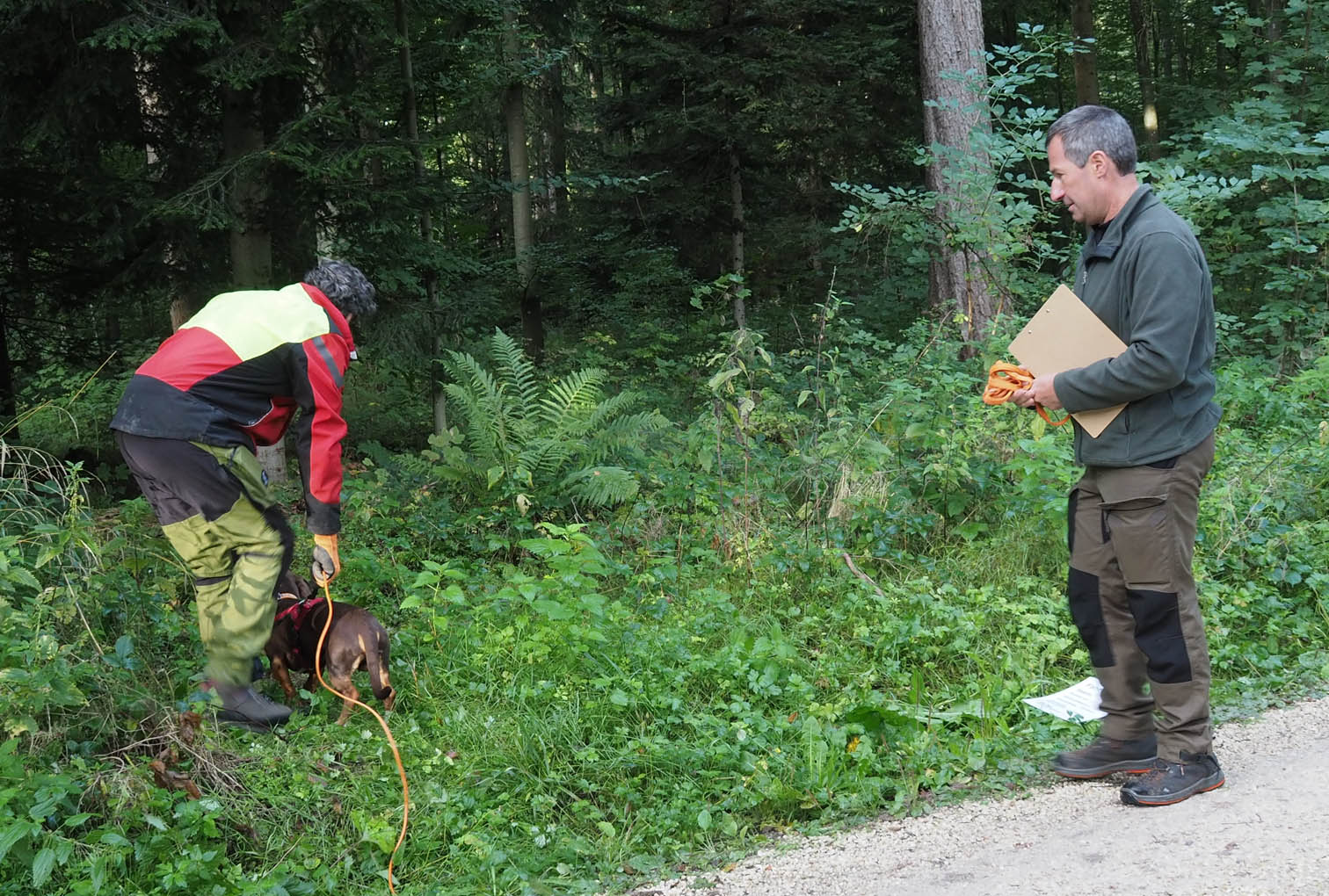 Zur zweiten Brauchbarkeitsprüfung 2023 sind, bei bestem Prüfungswetter an der Jägerackerhütte, 7 Gespanne angetreten. Hundeobmann Martin Schietinger begrüßte Richter und Teilnehmer, Prüfungsleiter Gerhard Weiß erläuterte noch einmal, worauf es bei den einzelnen Fächern nach der Prüfungsordnung ankommt, danach begann es direkt mit den Schweißfährten im umliegenden Bestand.