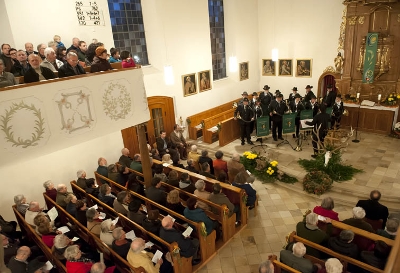 Auf 600 Besucher schätzte Mesnerin Barbara Flath die Zahl derer, die die feierliche Hubertusmesse zusammen mit Pfarrer i.R. Alfred Hägele und dem Bläserkorps der Kreisjägervereinigung am Sonntag in die Michaelskirche in Gerstetten gelockt hatte. Das 13-köpfige Korps unter der Leitung von Axel Schuh (Dettingen) hatten ihre sonor klingenden Parforcehörner in Es gestimmt und zuvor eifrig geprobt. Kreisjägermeister Jürgen Bohnert , selbst Mitglied des Ensembles, freute sich dann auch über so viele festlich gestimmten Gäste, die sich zur Erinnerung an die Bekehrung des heiligen Hubertus gekommen waren. Wenngleich die evang. Kirche keine Heiligenverehrung und daher auch keine Schutzpatrone kenne, achte sie durchaus auf Tradition und Brauchtum, betonte Pfarrer Alfred Hägele. Für ihn hat der Jäger mit dem Erwerb des Jagdscheines eine besondere Verantwortung übernommen : Nicht nur die „Lizenz zum Töten“ sondern auch die Pflicht zum Bewahren und zur Hege. Dies komme in den einzelnen Teilen der Messe zum Ausdruck. Eingehend hatte sich der Geistliche mit den Leserbriefen beschäftigt, die vor Jahren durch die Heidenheimer Presse gingen. Mein Wert als Jäger und „mein Rechtsein“, so resümierte Hägele , hänge nicht vom Urteil anderer ab. Die Freiheit des Einzelnen hänge von Gott ab. Ihm sei der Jäger „zuerst und vor allem verantwortlich“. Nachdem dies so sei, stehe es auch keinem anderen zu, den Jäger selig zu sprechen oder ihn zu verdammen. Art und Stil wie wir mit unterschiedlichen Meinungen umgehen, gehöre zu Kirche und Glauben. Das „Halali“ des Jägers, so Hägele abschließend, sei als Lob Gottes nicht nur sprachlich dem Halleluja verwandt. Das Halleluja als Lob und Jubel setzten die Bläser später in sonore Klänge um, so wie auch Choral und Sanktus in großer Geschlossenheit , Klarheit und Schönheit erklang. Das saubere Dirigat von Axel Schuh trug das Seinige dazu bei. Trotz des dankbaren Beifalls hatte der kalte und stürmische Wind den Bläsern auf der Alb einen Streich gespielt. Ihre sensiblen Parforcehörner waren ausgekühlt und wollten beim anfänglichen Introitus nicht gleich mitspielen.