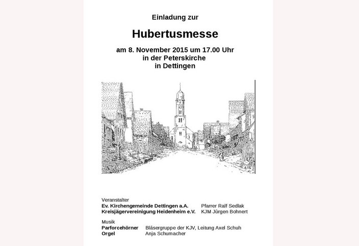 Die Hubertusmesse der KJV findet heuer am 8. November statt. Gefeiert wird sie in der Peterskirche in Dettingen. Die Messe wird ökumenisch gestaltet.