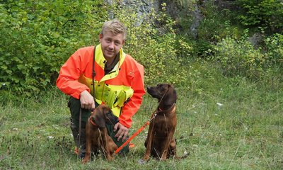 Christian Eder steht mit zwei BGS Hündinnen für Nachsuchen zur Verfügung: "Xeni vom Schwedenstein" und „Kiwi von der Hagendorfer Dickten“