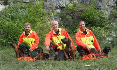 Mit dem Hanoverschen Schweißhund Rüden"Anton vom Eulenbruch" steht Wolfgang Schad für Nachsuchen zur Verfügung:Tel.:07328/6986 mobil: 0179-1057099