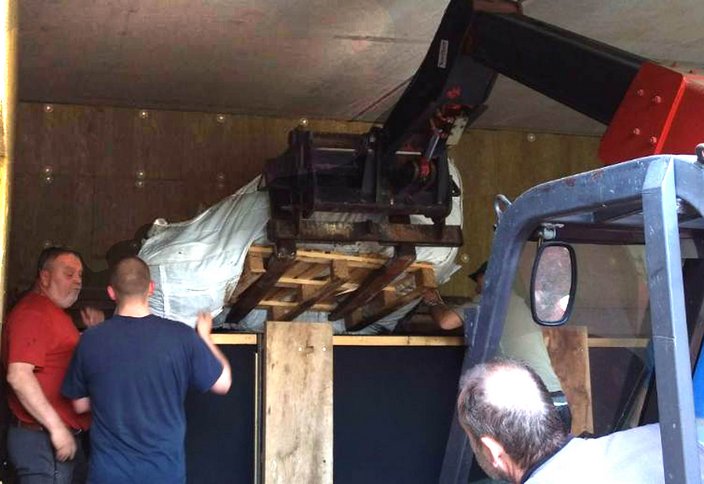 Die fast unglaubliche Menge von 10 Tonnen (!) Granulat ist in die Kugelfänge eingefüllt worden. Im Einsatz waren nicht nur die äußerst motivierten 13 Helfer sondern auch ein Manitou - Teleskoplader um die übergr0ßen Säcke zu transportieren.