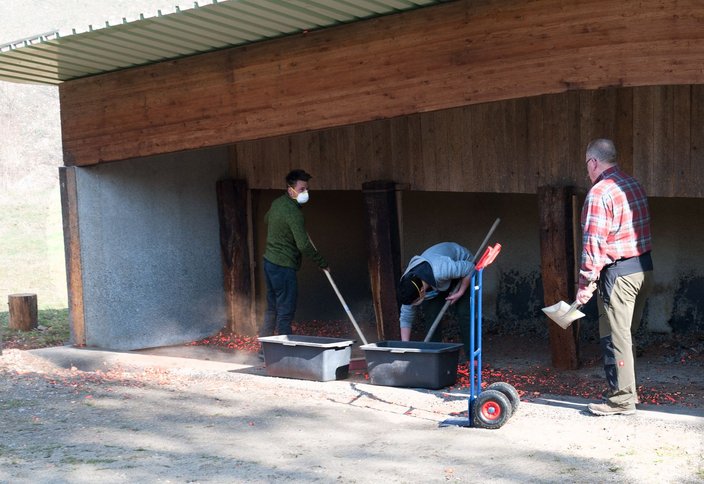 Zeitgleich haben die Jungjägeringen zusammen mit Kerstin und Veronika Kolczok den Aufenthaltraum sowie den Aufsichtsstand und den Taubenlagerplatz gereinigt. Im Laufe eines Jahres sammelt sich auch hier leider immer wieder viel Dreck und Unrat, an der beseitigt werden muss.
