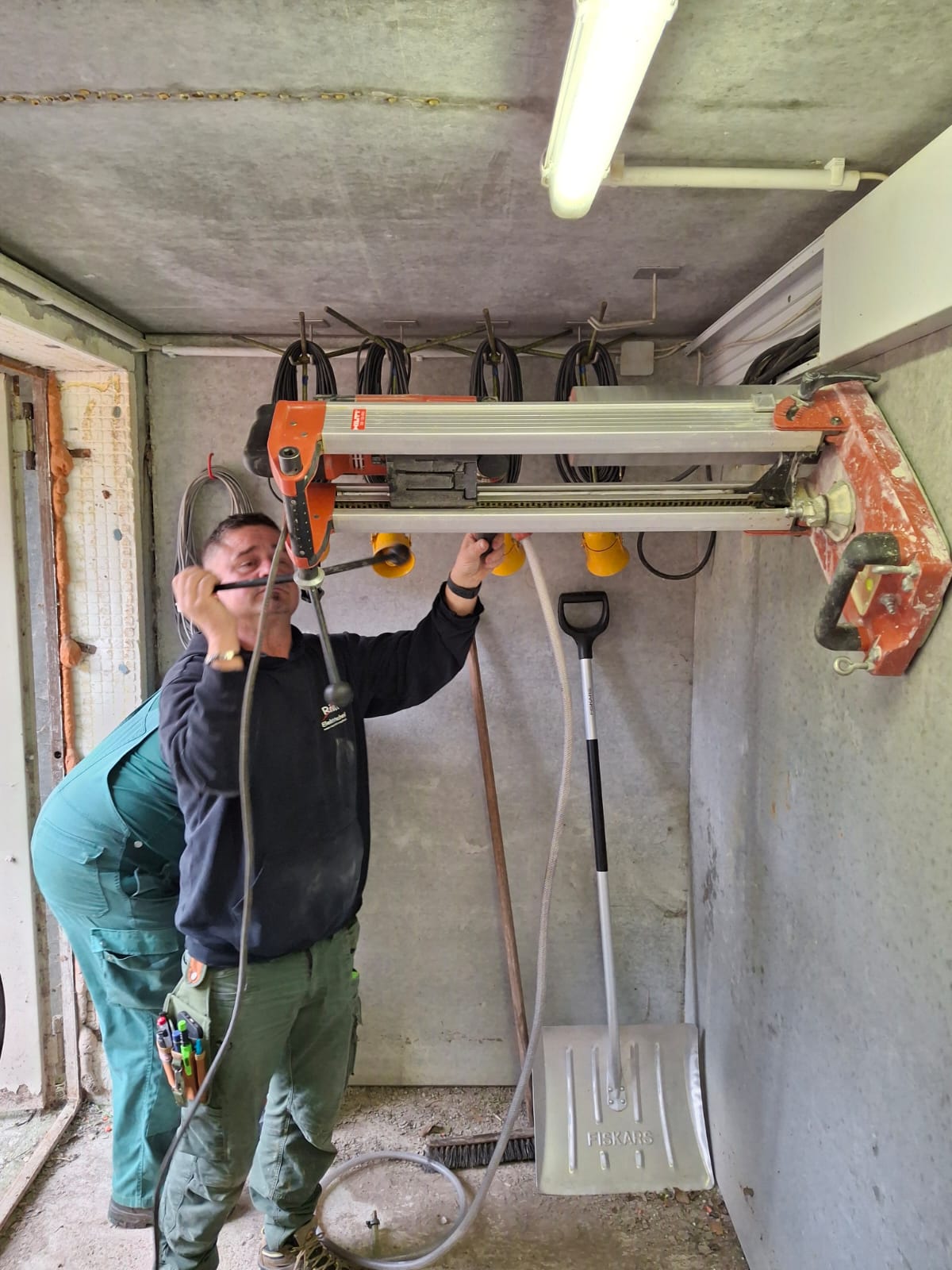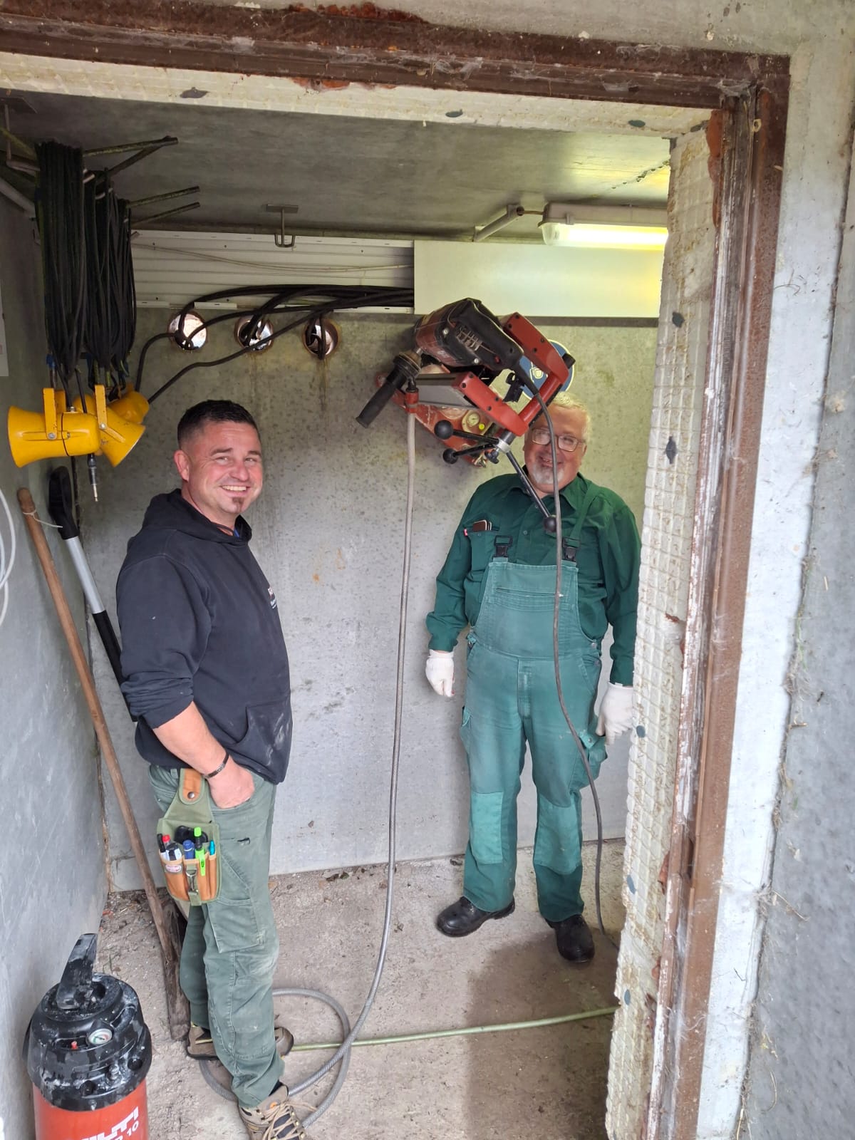 Stellv. Hegeringleiter (Härtsfeld) und Elektrofachmann Jürgen Röhm hat zusammen mit Thomas Fröhle den Verlauf sämtlicher bestehender Elektroleitungen untersucht und die noch fehlenden Leerrohre verlegt. Außerdem haben sie im Trapbunker eine zusätzliche Kernbohrung für die neuen Zuleitungen durchgeführt. Federführend übernahm Jürgen Röhm die Abklärung aller elektrotechnischen Abstimmungen mit der Firma Johannsen (Lieferant der neuen Wurfmaschinen) Somit ist sichergestellt, dass die Montage reibungslos erfolgen kann.