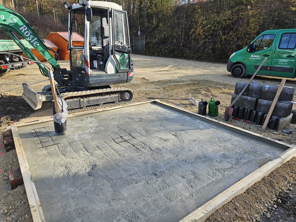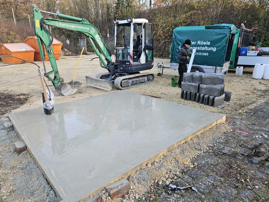 Peter Rösle hat sich auf meine Bitte hin spontan bereit erklärt, das neue Fundament für das Niederhaus und die Fundamente für den neuen Lagercontainer auszuführen. Hierbei setzte er an mehreren Tagen auch seine eigenen Maschinen ein!
