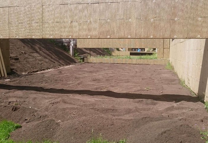 Angefangen hat es mit den Abbrucharbeiten der alten Anlage,der Geschossfänge 100m und Laufender Keiler, Entfernung der Schienen und der Stege, Abtransport des Materials in Containern.